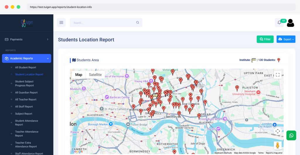 Track where your students are based and manage branches or online learners easily.